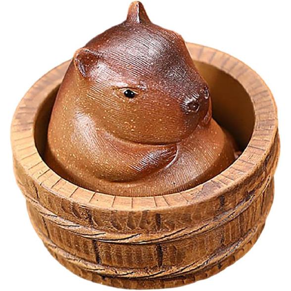Qianly Clay Capybara Mini Tea Pet Figurine Kung Fu Tea Pet Model Cute Accessories DIY Crafts Souvenir for Yoga Room Shelf Bedroom, Large