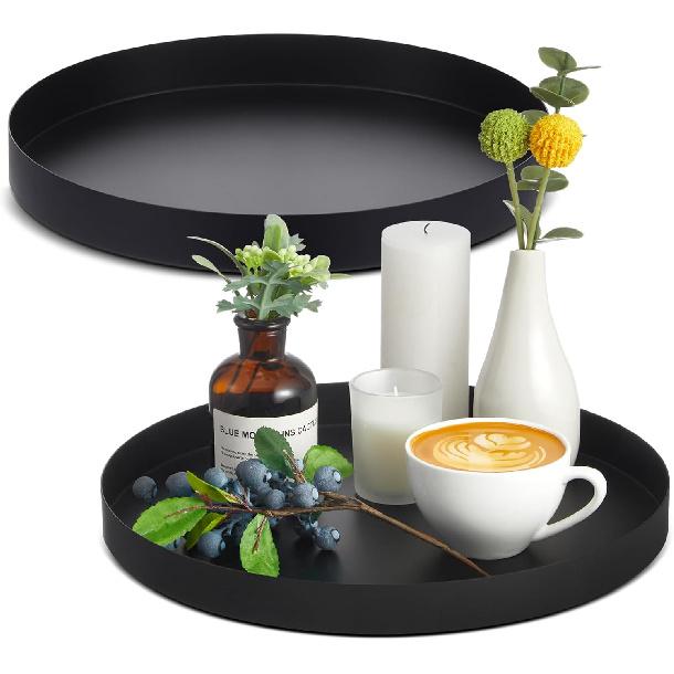 Serving Tray Set in Fashionable Design: this stylish set of 2 black round trays flaunts a modern, farmhouse style design