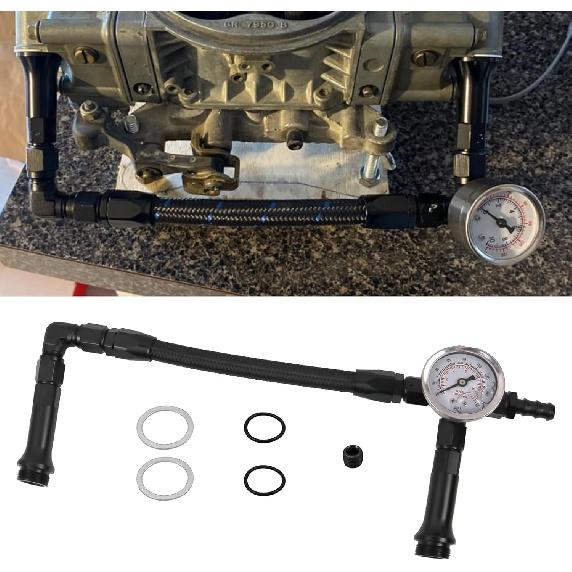 RULLINE AN6 Dual-Feed Double Pump Braided Fuel Line with 0-150psi Vacuum Pressure Gauge Compatible with Holley 4150 Carburetor