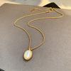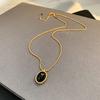 Vintage Black Agate Natural White Fritillary Earrings Necklace Femininity Clavicle Chain Silver Needle Earrings