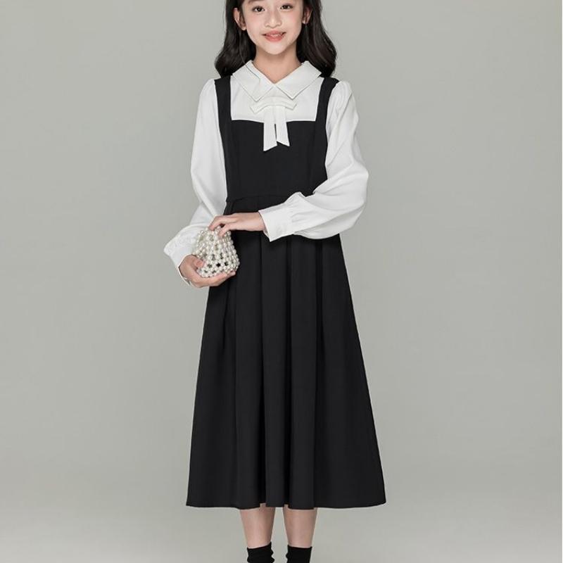 Girls' Color-blocked Faux Two-piece Long-sleeved Dress - Fall/Winter Children's Fashionable Princess Dress