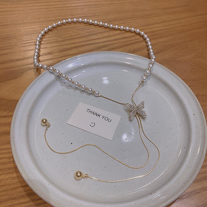 Douyin Popular Pull-out Pearl Necklace Female Niche Design Butterfly Pendant Collarbone Chain