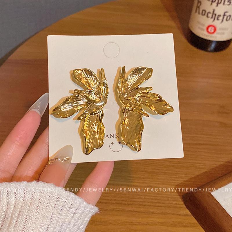 Three-dimensional Leaf Earrings Women's Exaggerated Cold Wind Stud Earrings Retro Temperament Earrings