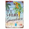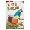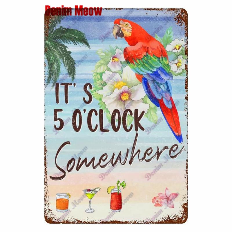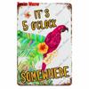 Metal Tin Sign Wall Decor, Vintage Parrot Cocktail Bar Plates, Kitchen Painting Decor, It's 5 O'clock, WY23