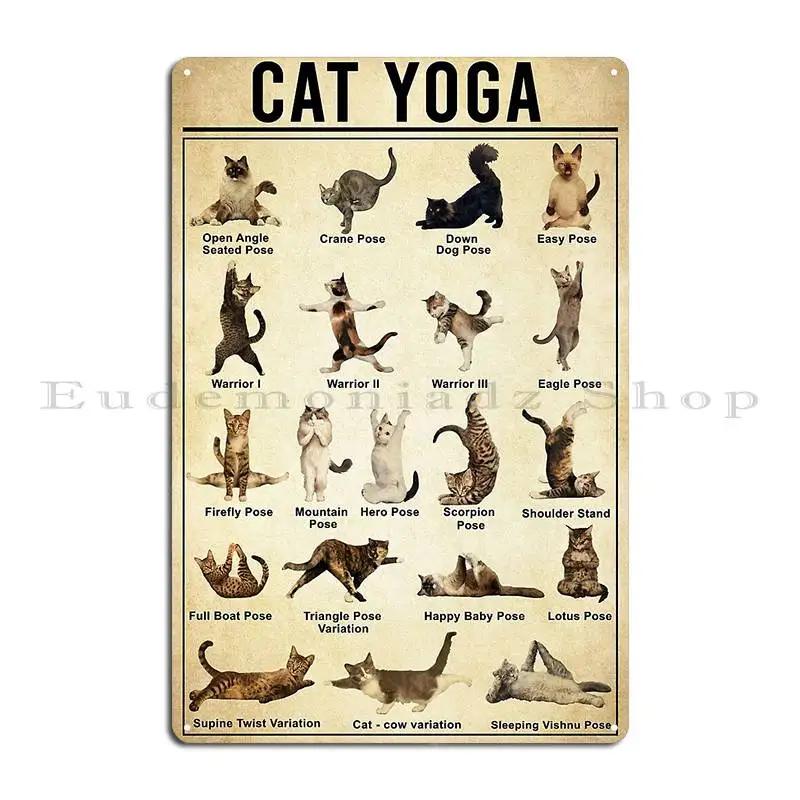 Yoga Cat Wall Art Cat Yoga Pose Metal Sign Pub Designs Create Create Plaques Tin Sign Poster