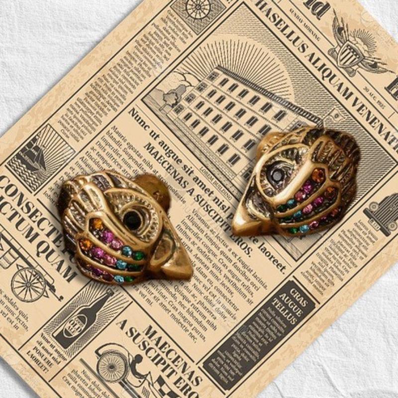 Medieval Jewelry Style Temperament Eagle Head Shape Old Sense of Diamond Color Sense Exquisite Small Stud Earrings