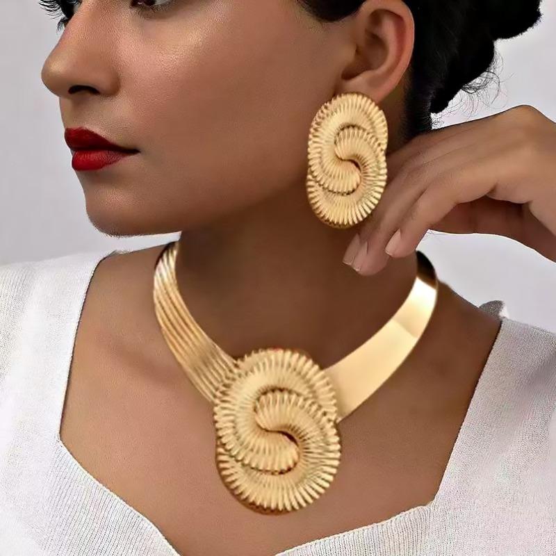 Stylish Vintage Geometric Twisted Thread Number Floral Choker Statement Exaggerated Corrugated Necklace Earring Set