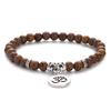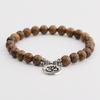 Natural Wood Beads Bracelet Women Men Yoga Meditation Prayer Om Pendant Wooden Jewelry Classic Sliver