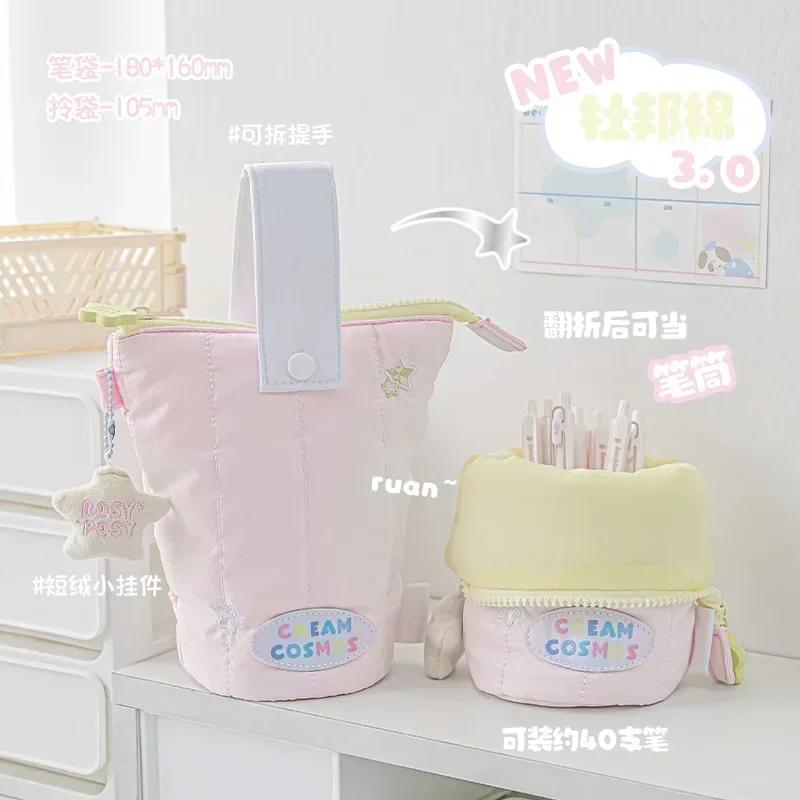 Ins Small Fresh Cream Color Portable Folding Pencil Case Cute Simple Girl Standing Pen Bag Kawaii Desktop Stationery Organizer