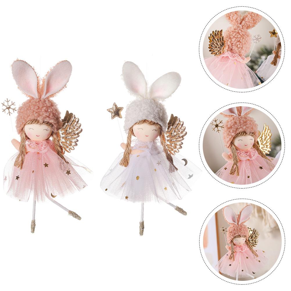 2 Pcs Cute Angel Pendant Garden for Outside Decorate Christmas Ornaments Pink