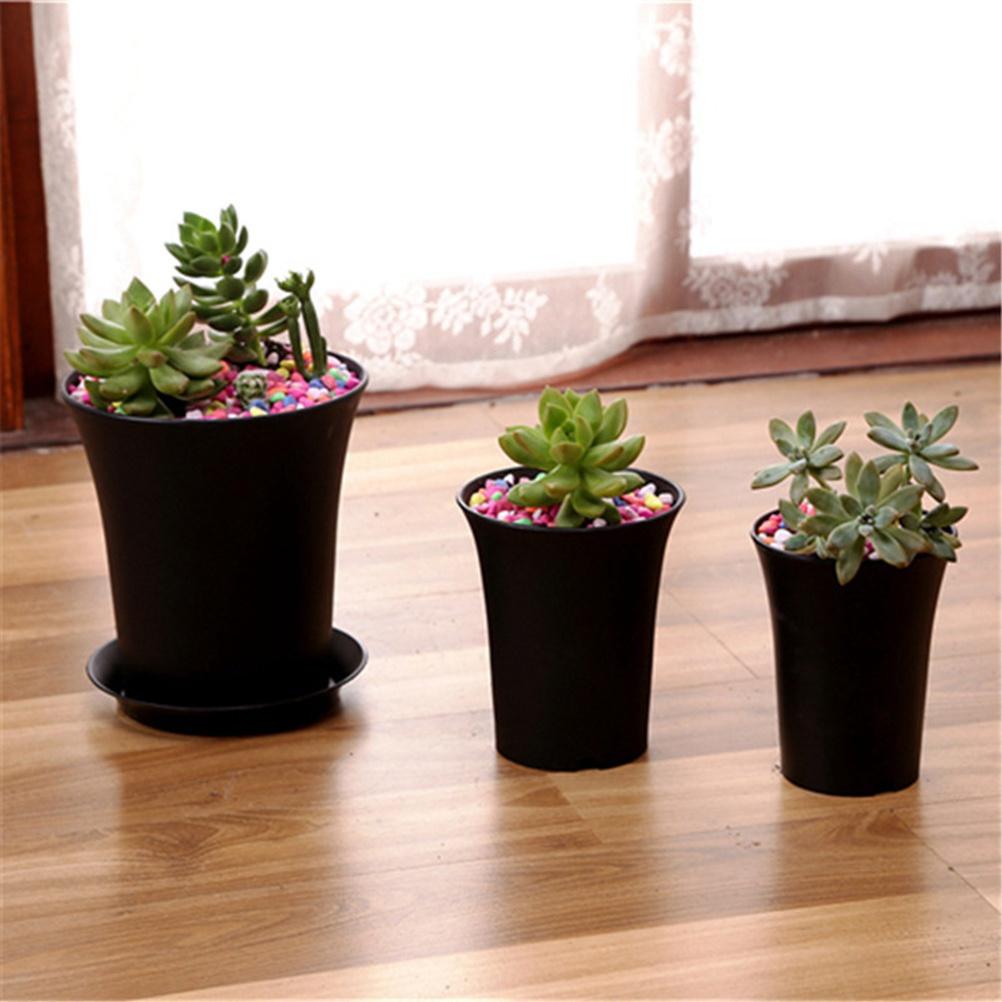6pcs Plastic Flower Pot Round Succulents Pots Lightweight Durable Resin For Home Office Balcony Garden Decoration White Black