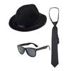 1920s Mens Gatsby Gangster Costume Accessories Set Fedoras Hat Neck Tie and Sunglasses 20s Mobster Costume for Men Teen