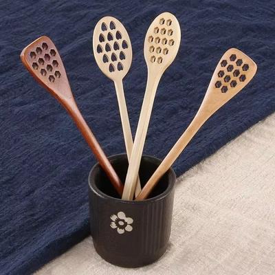 1Pc Wood Honey Dipper Sever Mixing Stick Spoon Honeycomb Heart Pattern