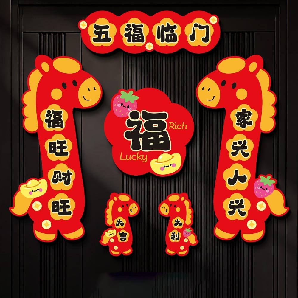 Chinese Style Cartoon Horse Couplet Cute Traditional Horse Year Door Couplets Horse Year Decorative Couplets