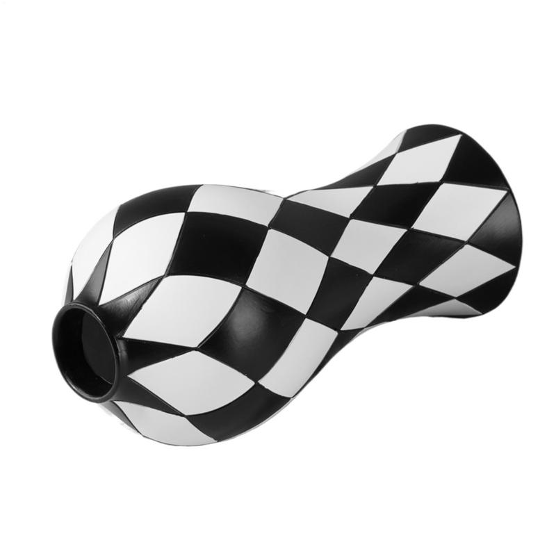Black And White Vase Aesthetic Vase Checkered Resin Craft Flower Container Waterproof Decorative For Room Table Centerpieces