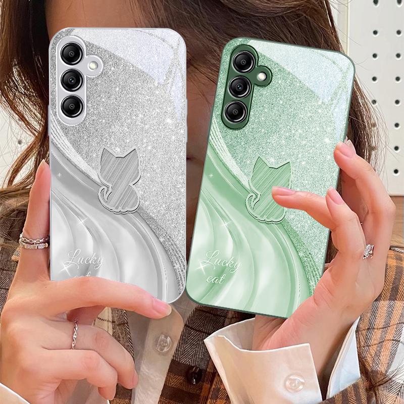 Sparkling Diamond Cat For Samsung Galaxy A14 4G 20 30 52 20S 21S 22 A32 33 34 42 50 51 53 54 70 71 72 73 5G Glass Phone Case