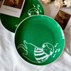 Korean Round Ceramic Cat Island Flat Salad Plate Cute Dessert Cake Dessert Plate