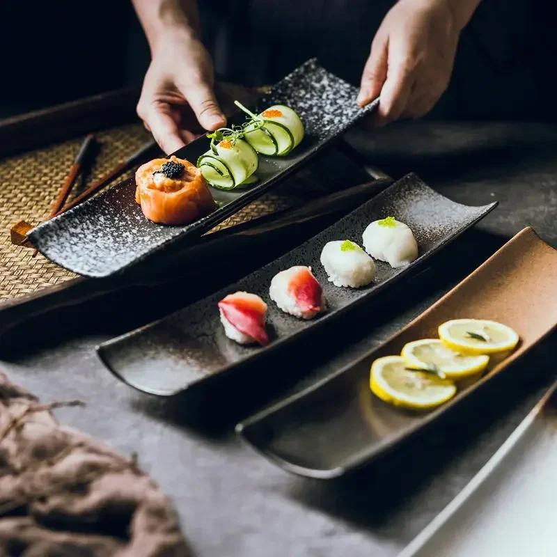 11 Inch Japanese Style Sushi Plate Ceramic Creative Rectangular Plate Dim Sum Plate Personalized Retro Tableware Plating