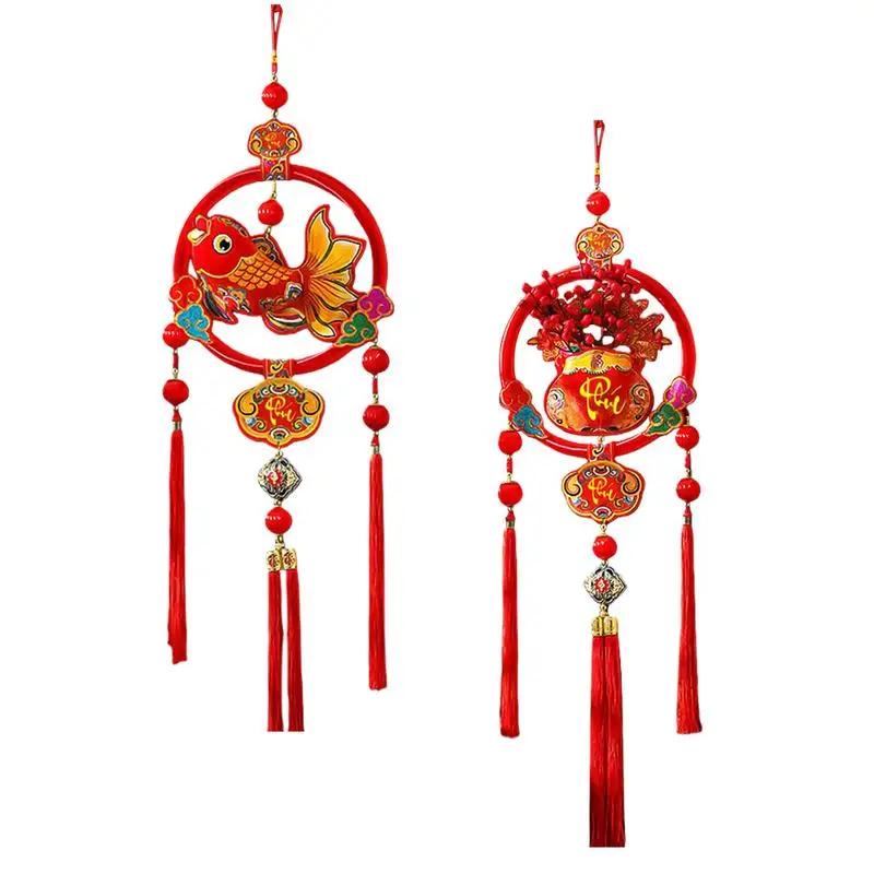 Vietnamese New Year Hangable Ornament 2025 Spring Festival Blessing Tassel Ornament Lucky Character Pendants Holiday Home