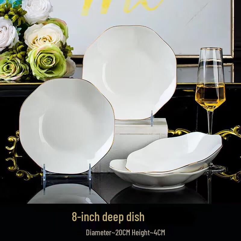 ModelLotus Gold-Rimmed 8-inch Plates (Set of 6)