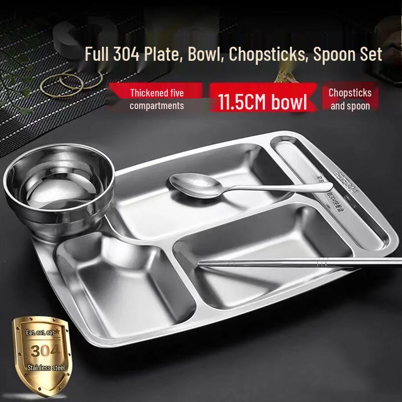 Mailang 304 Stainless Steel 5-Compartment Divided Meal Plate Set