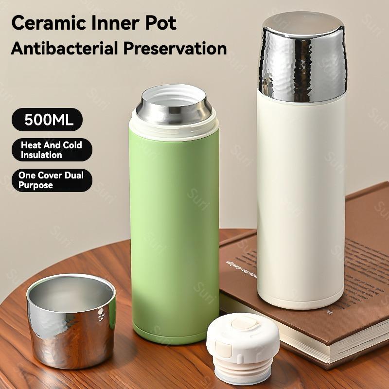 Stainless Steel Ceramic Liner Vacuum Tea Tumbler 500ml Dual Drinking Modes Leakproof Thermal Flask for Hot Cold Drinks Portable