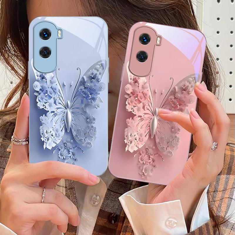 Green Flower Butterfly For Honor 30 50 50SE 70 Pro 90 200 200Pro Magic 4 5 7 Lite X9c Smart X50i Plus X9 X30 Glass Phone Case