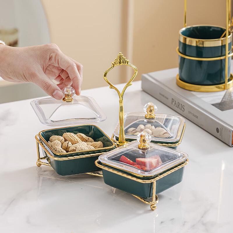 JingQingFu Portable Ceramic Divided Snack Plate with Lid