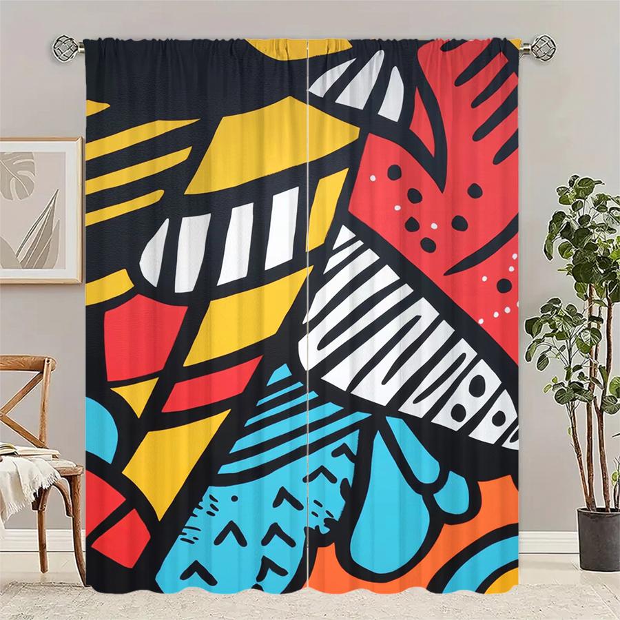 2 Pcs Geometric Graffiti Print Curtains,suitable for Bedroom,living Room Kitchen Decoration,home Decoration,window Decoration