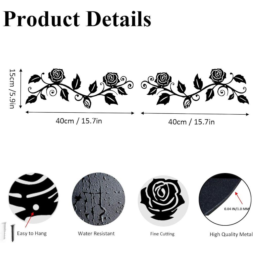 Metal Wall Art Black Vintage Rose Leaf Tree Decor 2 Piece Set