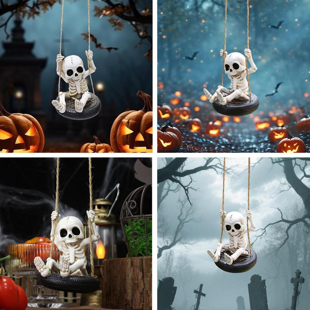 Skeleton Garden Statues Small Landscape Decoration Sculpture Hangable Garden Skeleton Tire Swing Sculpture For Halloween Indoor