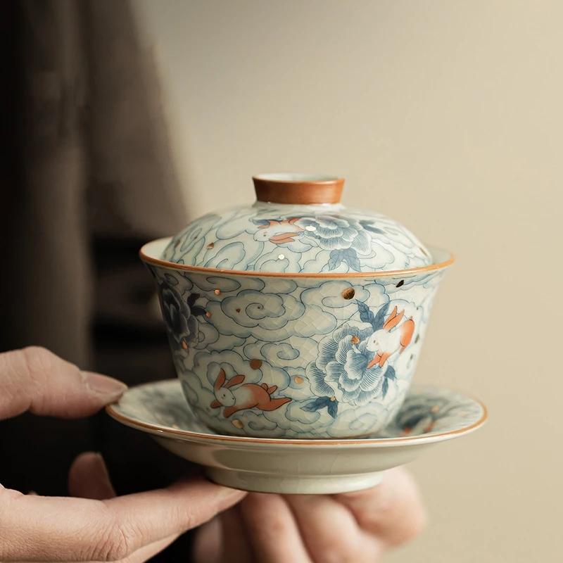 100ml Ru Yao Small Gaiwan Set For Tea Ceramic Opening Chinese Tureen Cloud Tea Bowl Kung Fu Rabbit Tea Chawan Tea Cups Lily Deng