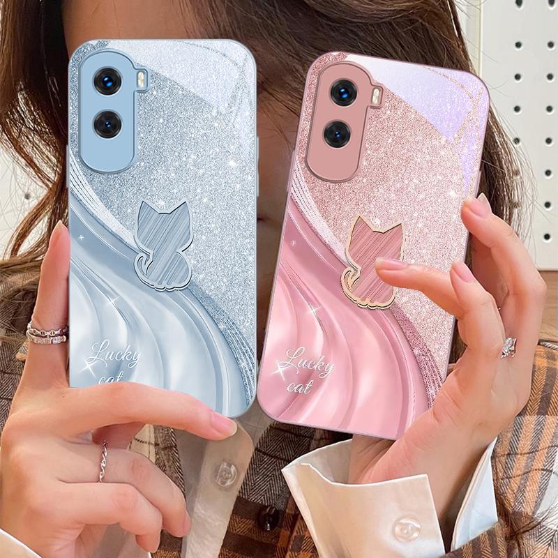 Sparkling Diamond Cat For Honor 200 90 8X 9X Pro Lite P50 P40 Nova 10 11i P60 Magic4 6 Mate 20 50 Tempered Glass Phone Case