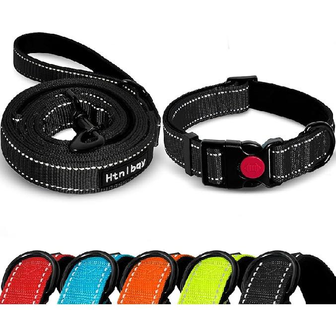 Double-Sided Reflective Dog Leash, 5 FT Padded Handle Nylon Dogs Leashes for Medium & Large Dogs Walking, Reinforced Reflective Buckle Dog Collar,