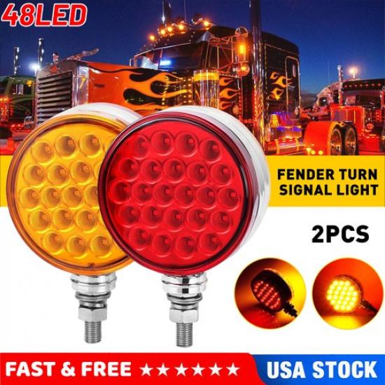 2X Round 48 LED Double Face Turn Signal Pedestal Fender Side Marker Brake Light