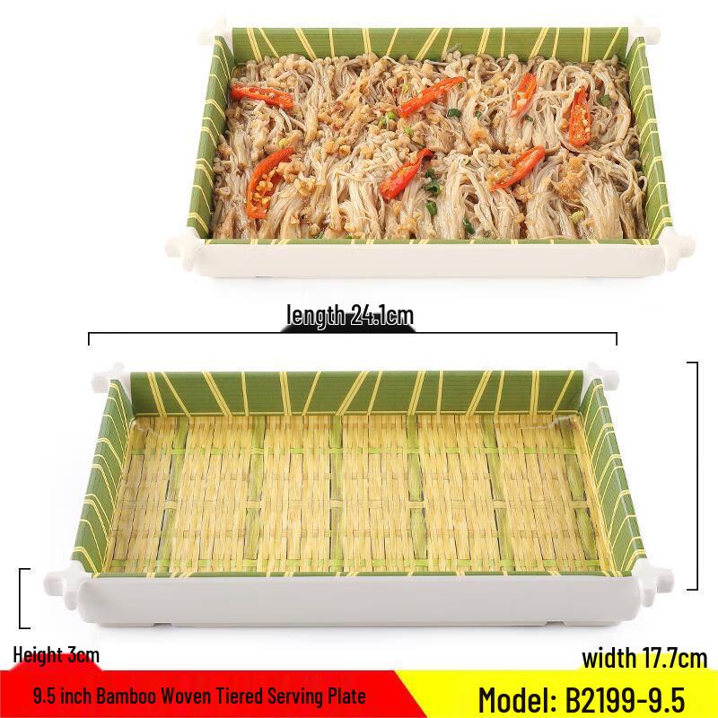 Qianxing Melamine Imitation Bamboo Weave Serving Plates, Set of 5