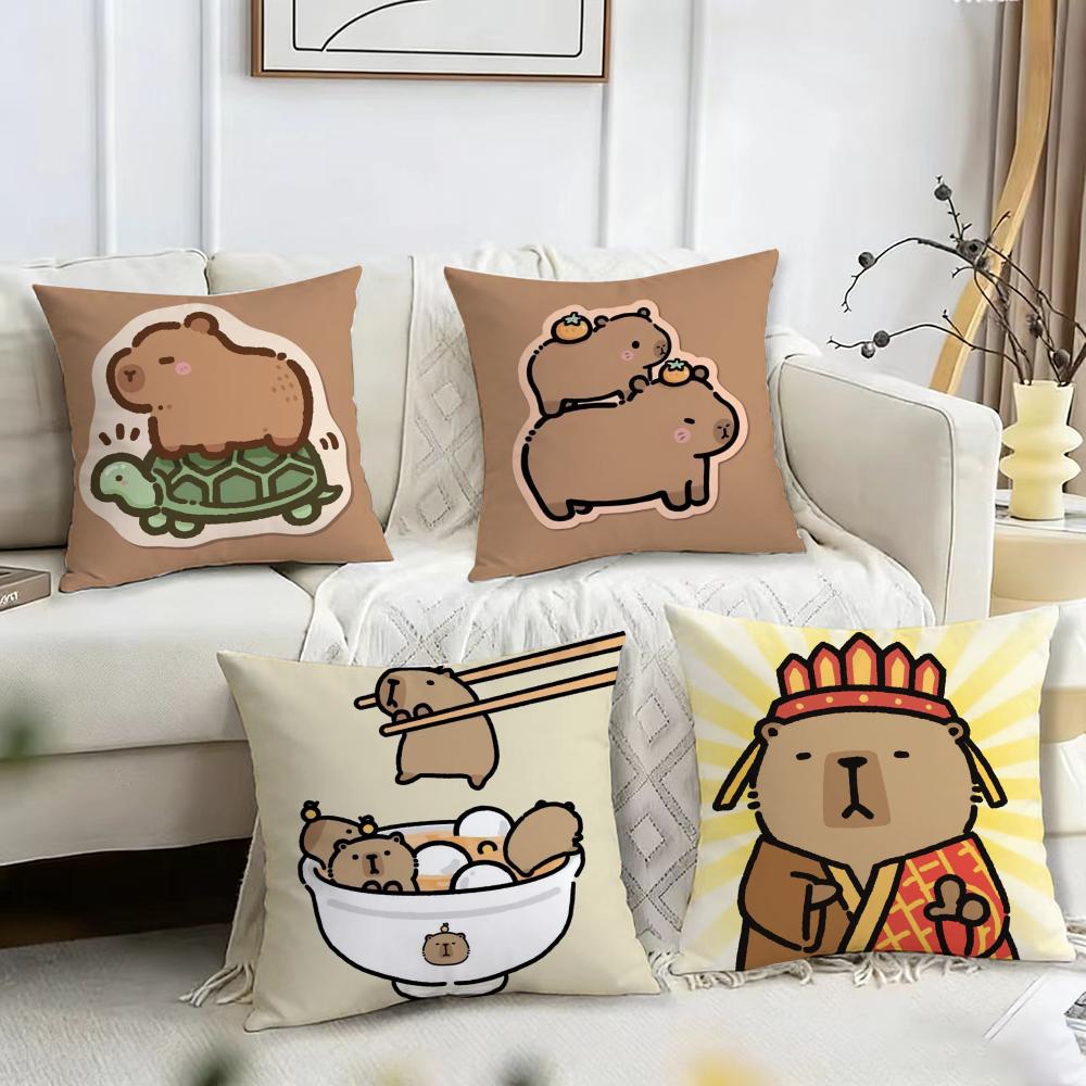 Capybara Cartoon Cute Cushion Cover Reversible Plush Pillow Cover – For Car, Sofa, Bedroom, Perfect As a Gift.