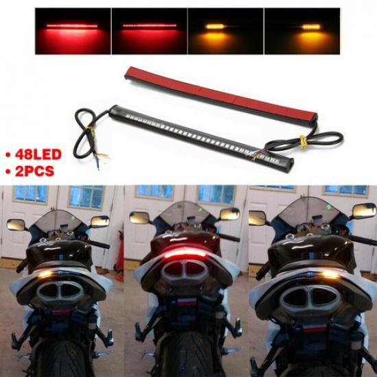 48 LED Motorcycle Flexible Signal Turn Amber Integrated Strip Brake Tail Light
