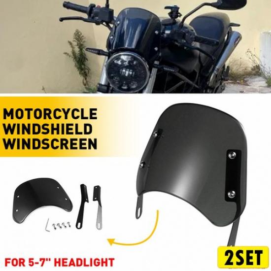 2X Motorcycle Headlight Windshield Universal Windscreen For 5-7'' Headlamp Round