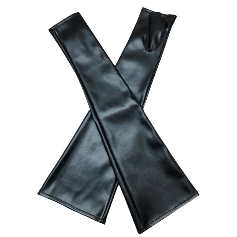 47cm Black PU Leather Long Fingerless Gloves Punk Rock Dance Women Hip Pop Jazz Disco Mittens Clubwear Cosplay Accessories