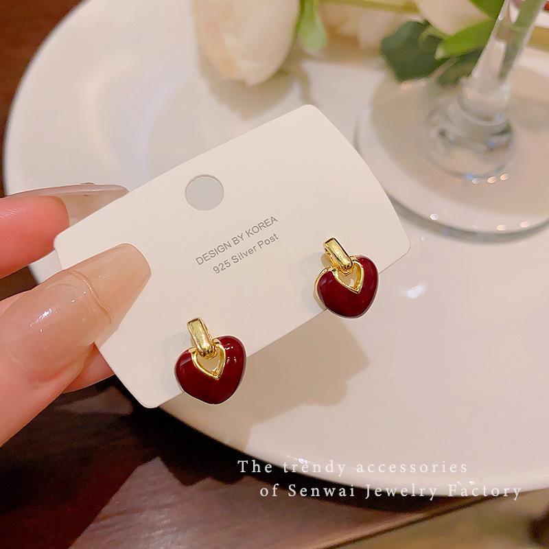 Simple Drop Glaze Red Love Stud Earrings Femininity Internet Celebrity Earrings French New Earrings