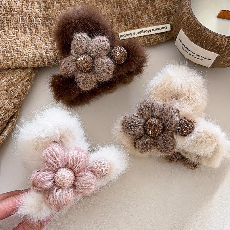 Plush Flower Grab Clip Female Shark Clip Hairpin 2026 New Back Head Coil Hair Clip Hair Accessories