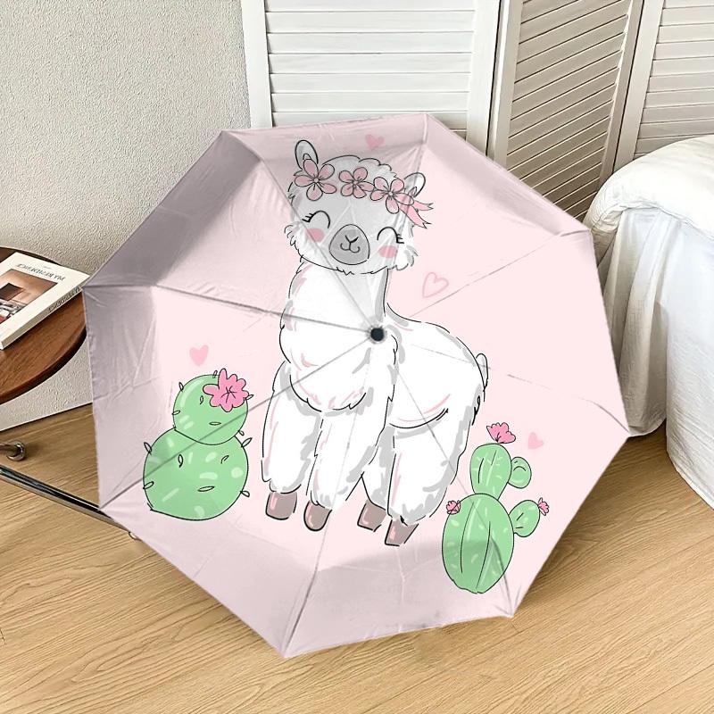 1pc Llama Cactus Automatic Folding Umbrella 8 Rib Iron Frame, Compact Portable Umbrella Suitable for Travel, Daily Use, Birthday, Women & Men Gift 016