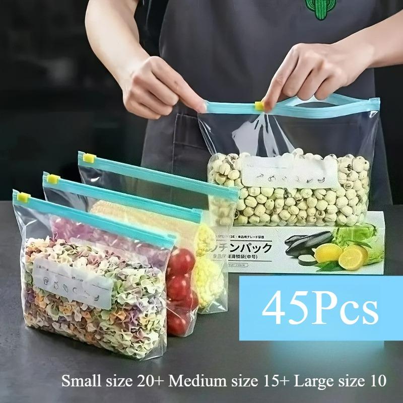 45-Piece Set of Three-Size Sealed Food Storage Bags Durable Plastic Multi-Purpose Reusable Sealing Bags Kitchen Food Storage and Preservation