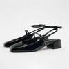 Mid Heels Office Lady Mary Jane Shoes Retro Patent Leather Square Head Slingbacks Fashion Ankle Strap Ladies Summer Sandals