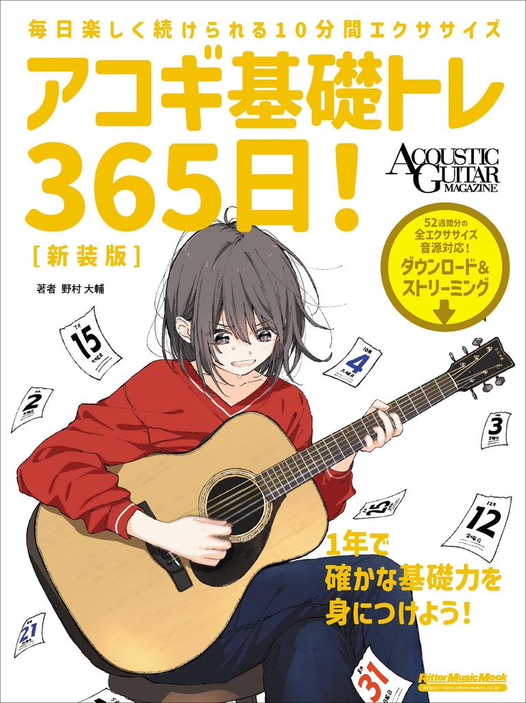 The surest way to improve is to "continue to practice high-quality music without straining yourself." This book is a new edition of the best-selling "365 Days of Basic Acoustic Guitar Training!", which systematizes this absolute rule.