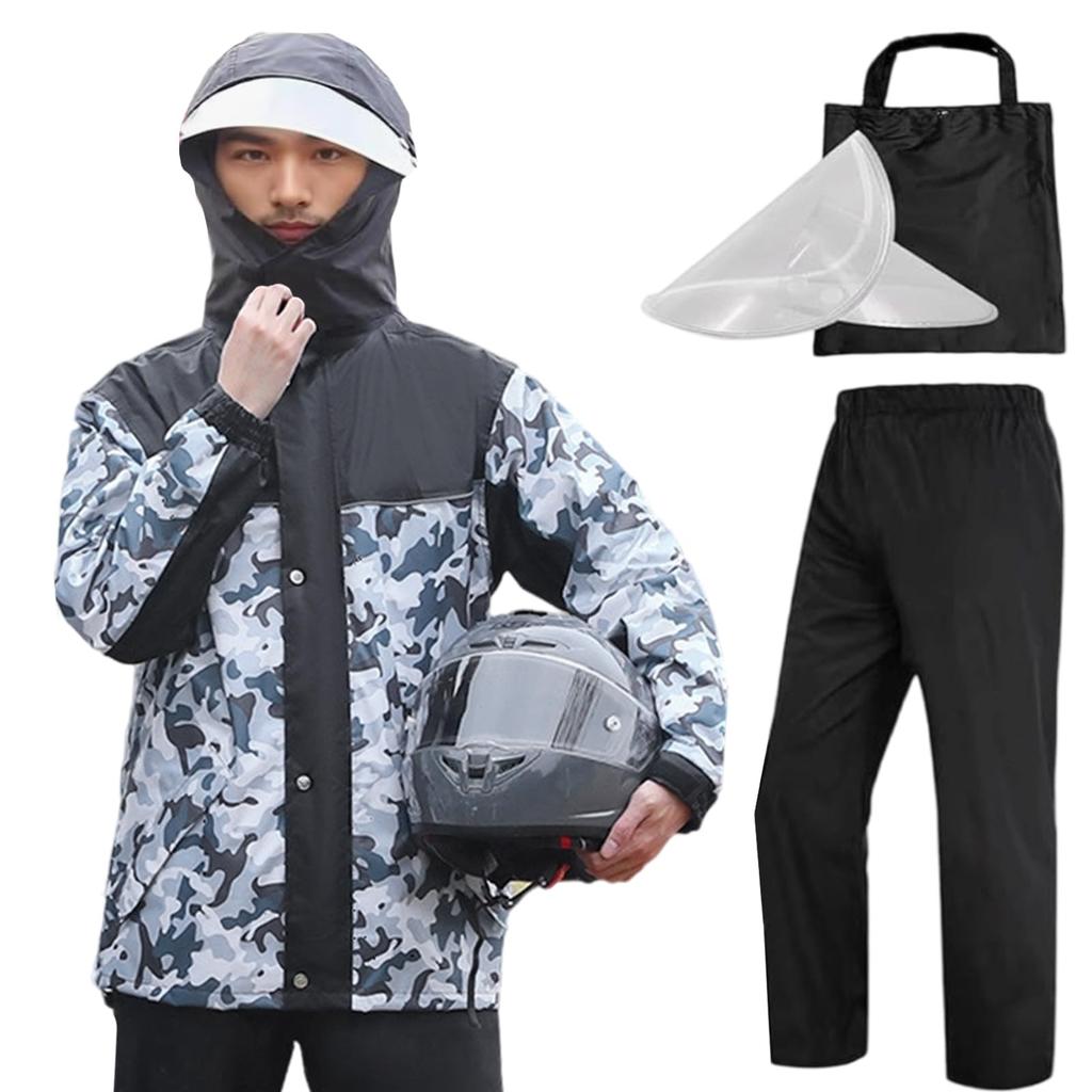 Formemory Men's Motorcycle Rainwear Set, Waterproof and Windproof, Separate Design for Heavy Rain, Heavy Duty, Lightweight, Camouflage Design (Size L)