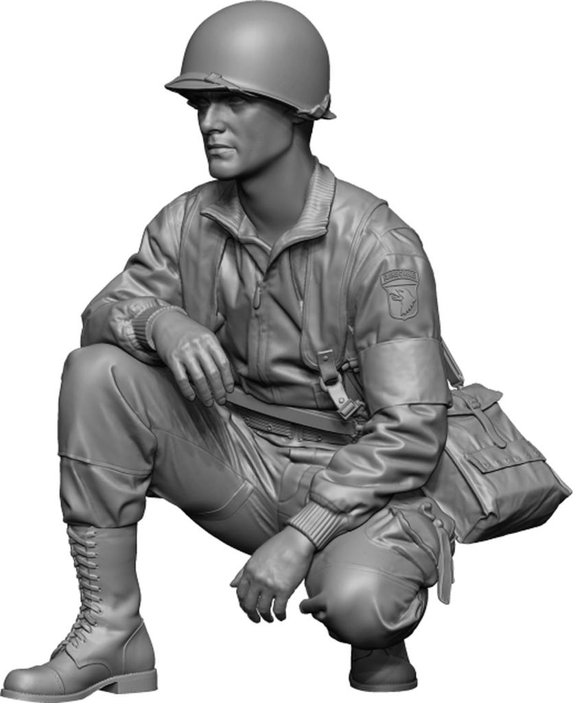 This resin figure recreates a U.S. Airborne Division soldier immediately following the Normandy landings.
