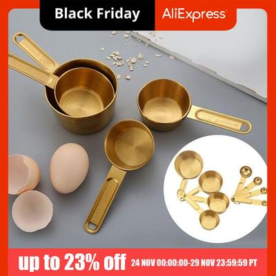 8Pcs Stainless Steel Measuring Cups Measuring Spoons Set Scaled Gold Silver Measuring Tools Stackable Spoons