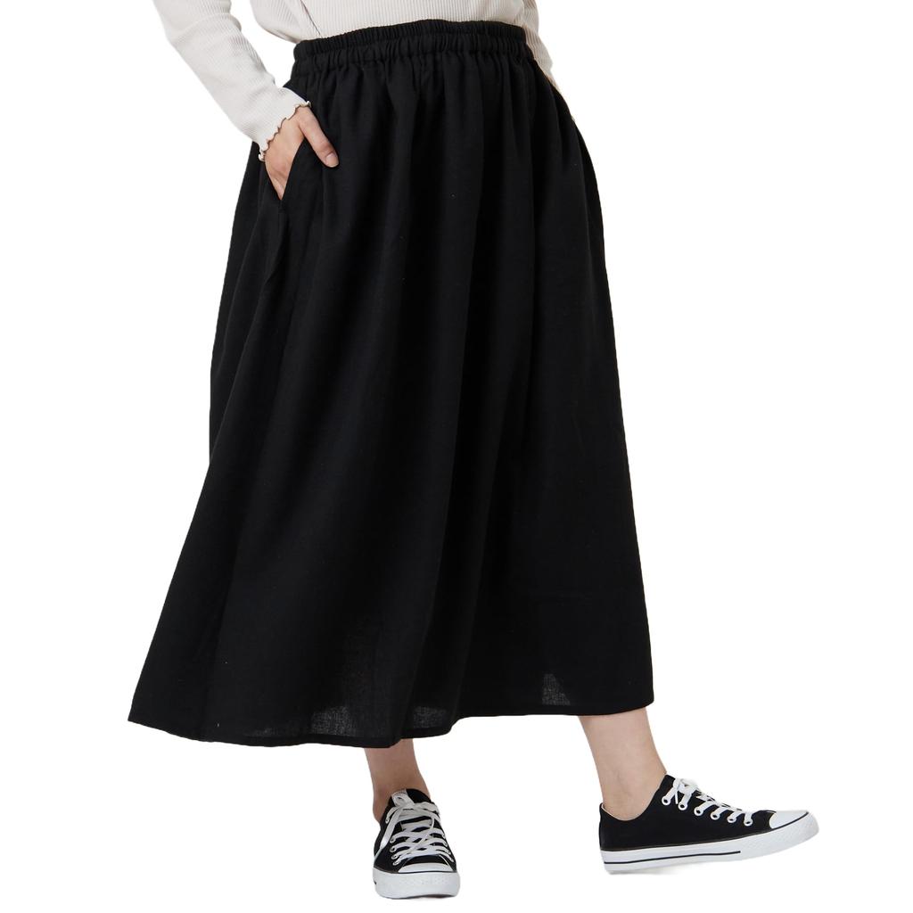 Happy Marilyn Plus Size Flared Lightly Brushed Check Solid Soft Elastic Long Flannel Sizes Black Women's Skirt, Long, Fall/Winter, Pattern, Color,